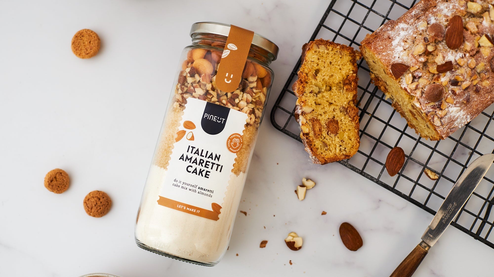 Op zoek naar een verrukkelijke traktatie? Probeer onze Italiaanse Amaretti Cake Mix met heerlijke bitterkoekjes en amandelen.