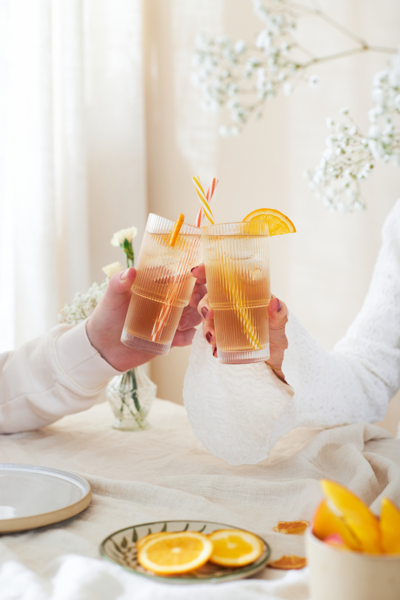Voeg simpelweg een fles mousserende wijn toe, laat de smaken even intrekken en serveer met ijs. In een paar minuten geniet je van een frisse, feestelijke sangria met een biologische twist.