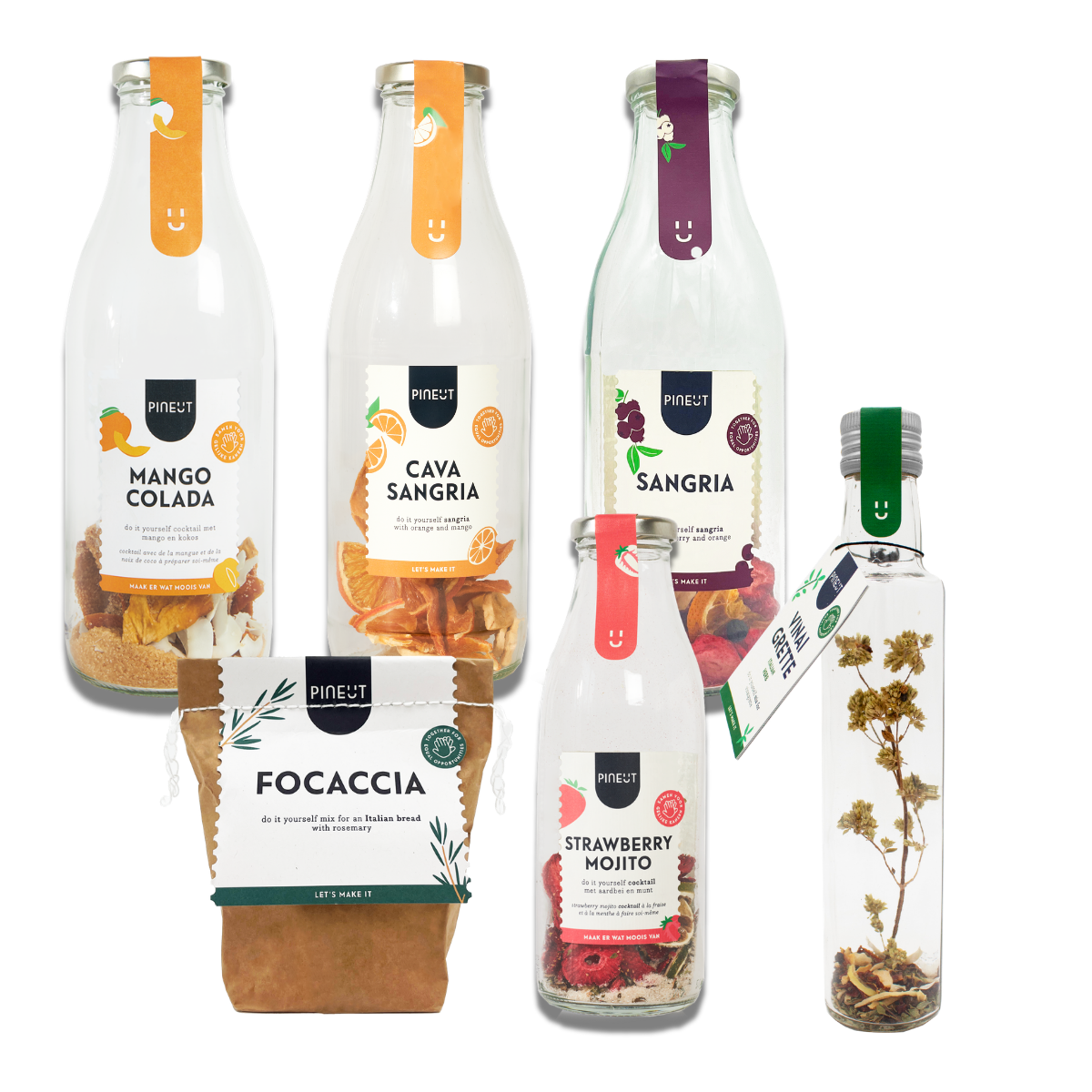 Samen genieten staat centraal in dit royale borrelpakket. Mix Sangria, Cava Sangria, Strawberry Mojito of Mango Colada en combineer met focaccia en vinaigrette giftpack. Ideaal voor een groepscadeau of een avond waarop iedereen blijft hangen. Proosten, delen en nog een rondje.